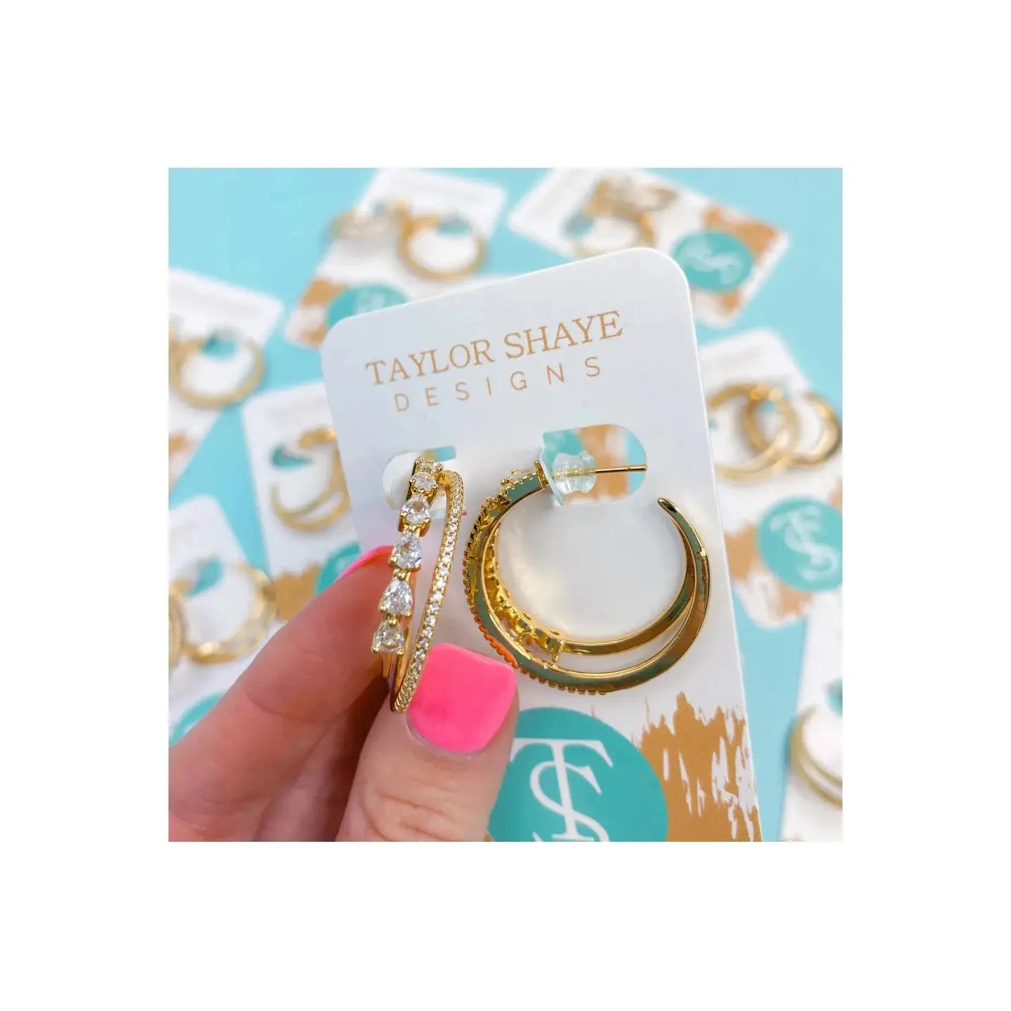 Upgrade your everyday look with our stunning gold and cz double hoops. These earrings effortlessly elevate any outfit and add a touch of elegance. Trust us, you won't want to take them off!